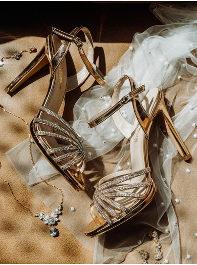 Elegantni poročni sandali v odtenku rosegold očarajo s svojo prefinjenostjo in ženstvenim sijajem. Odlično se podajo k različnim poročnim in svečanim oblekam, hkrati pa so dovolj vsestranski, da jih lahko nosite tudi po poroki.
