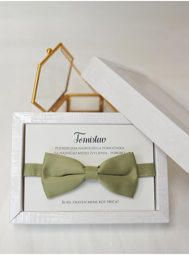 Bodi moja poročna priča! V znak hvaležnosti podarite moškemu, ki bo vaša poročna priča metuljček iz satena v izbrani barvi - barve si oglejte