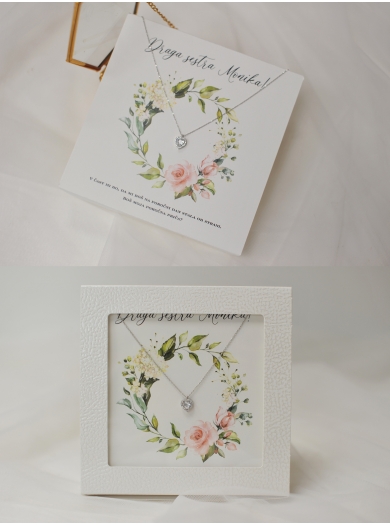Izkažite hvaležnost svoji poročni priči ali družici s posebno ogrlico, ki nosi eleganten motiv srca s kristalčkom. Ta čudoviti nakit predstavlja večno prijateljstvo in ljubezen. Vsaka ogrlica je opremljena z osebnim posvetilom, ki ga pripravimo posebej za vas, da izrazite sporočilo po meri, prilagojeno osebi, ki vam je blizu.
