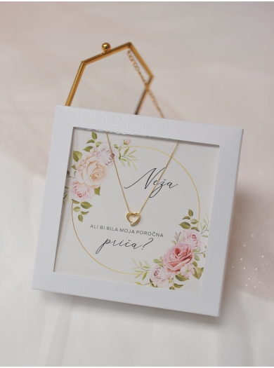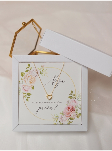 V znak hvaležnosti obdarite poročno pričo ali družico s čudovito ogrlico s simbolom srca. Ogrlica je priložena kartončku s posvetilom, ki ga po vaši želji tudi personaliziramo. Darilo je aranžirano v darilni škatlici velikosti 12x12 cm.