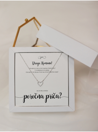 Podari svoji poročni priči elegantno ogrlico s simbolom srca – čudovit znak večne povezanosti in hvaležnosti.