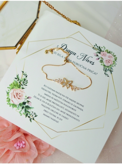 Izkažite svojo hvaležnost poročni priči ali družici z elegantno zapestnico s simbolom metulja. Izdelana je v rosegold odtenku.