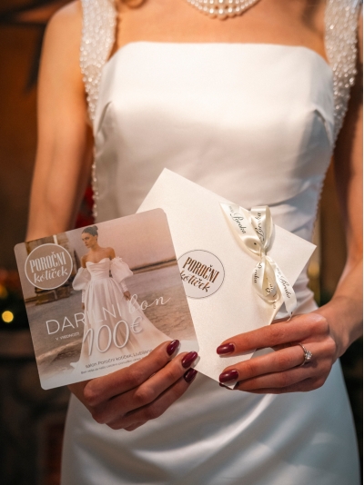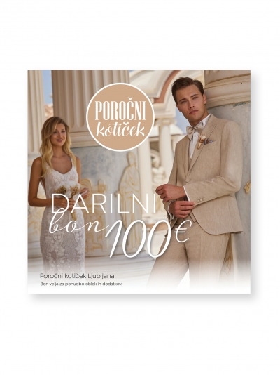 Bodoča nevesta ali ženin lahko bon izkoristita za nakup izbrane poročne obleke, elegantnih modnih dodatkov ali drugih izdelkov iz ponudbe, s čimer si ustvarita popoln poročni videz.