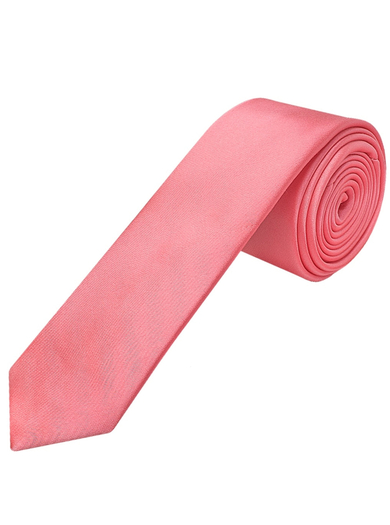 Moška kravata iz gladkega satena v koralno-breskva roza barvi bo popestrila svečan videz moške obleke.