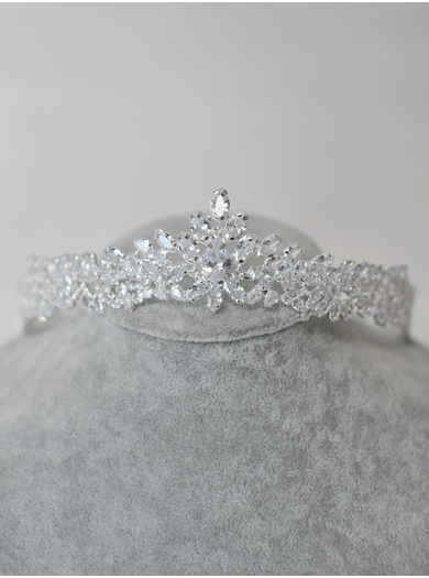 Čudovit lasni obroč v obliki mogočne tiare s srebrnimi kristalčki je popoln dodatek, ki bo zasijal v vaši poročni pričeski.