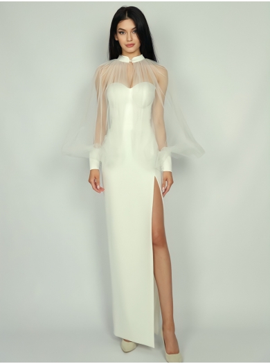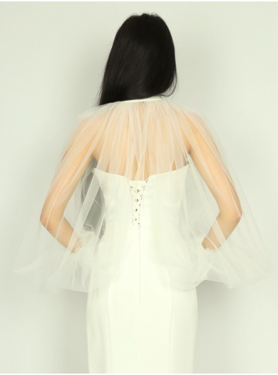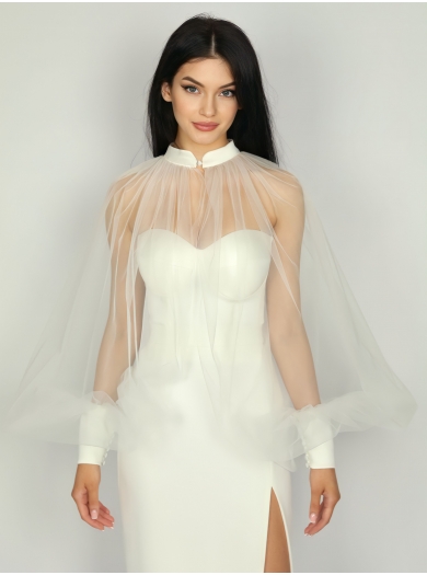 Poročno ogrinjalo z rokavi iz nežnega tila, s katerim elegantno dopolnite svojo poročno obleko. Odlično je za cerkveni obred, hladnejše dni ali kot prefinjen modni dodatek, ki doda obleki posebno noto. Ogrinjalo je sodoben in čudovit detajl, ki oplemeniti vsak poročni videz.