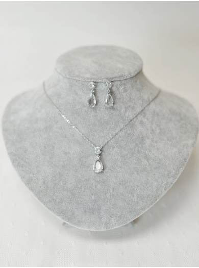 Čudovita poročna ogrlica, sestavljena iz kristalčkov, ki jo lahko uskladite z vsako poročno obleko. V kompletu so tudi poročni uhani. Ogrlica je še posebno primerna za poročne obleke s srčastim izrezom.