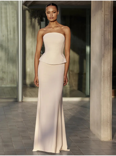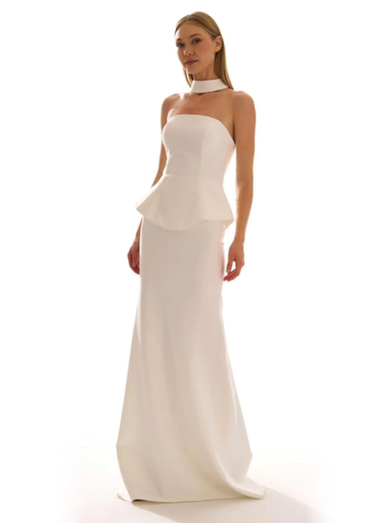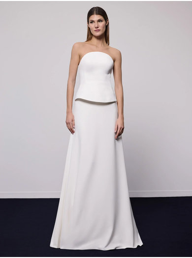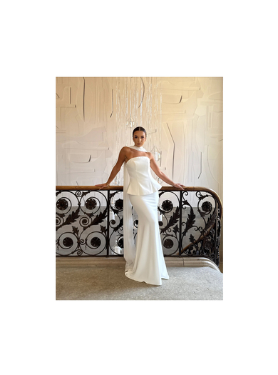 Poročna obleka River je popolna izbira za neveste, ki sledijo sodobnim modnim trendom in prisegajo na minimalizem. Dvodelni model iz matiranega crepe satena navdušuje s čisto eleganco in brezčasno linijo, ki omogoča neskončno možnosti kombiniranja z različnimi modnimi dodatki in poročnim nakitom – ustvarite popolnoma svoj, edinstven videz.