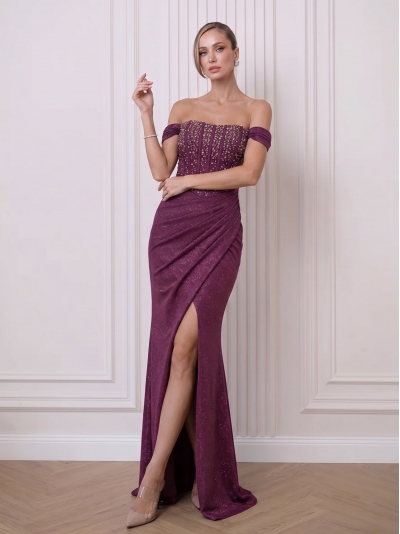 Posebnost obleke je bogat zgornji del, obogaten s kristalčki.