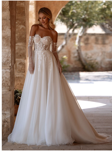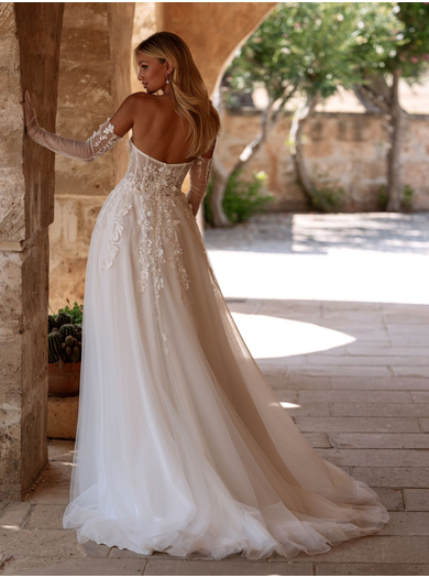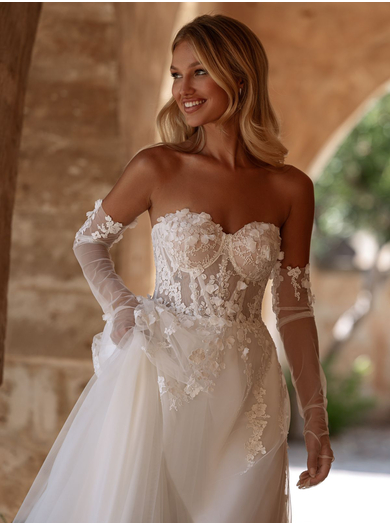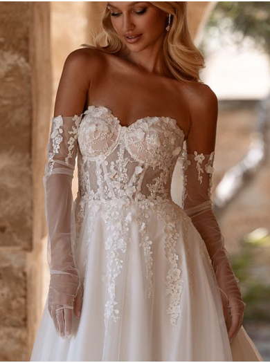 Obleko dopolnjujejo prefinjene rokavice, ki zaokrožijo celoten videz in nevesti nudijo še večjo prefinjenost in gracioznost.