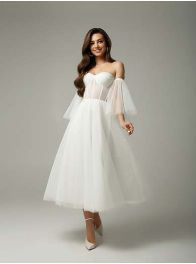 Popolna izbira za civilni obred, poroko v intimnem vzdušju ali kot druga obleka za sproščene večerne trenutke.