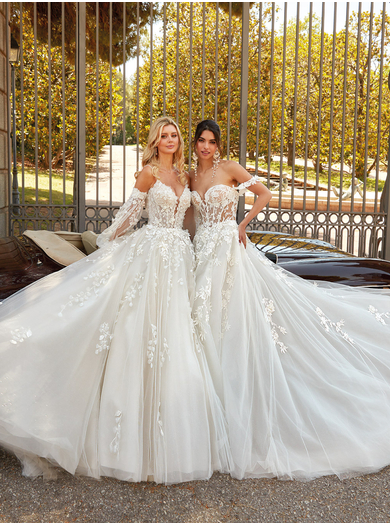 Krilo obleke je večplastno, kar zagotavlja občutek razkošja. Zunanji sloj krila je narejen iz nežnega tila, ki omogoča lahkotno gibanje in ima nežen, romantičen videz. Korzet obleke je izdelan je iz najkakovostnejšega materiala in je posut s posebno čipko, ki je ročno izdelana in vključuje drobne biserčke in kristalčke. Ta čipka se preliva v spuščene naramnice, ki ustvarjajo nežen in zapeljiv videz na ramenih. Korzet se tesno prilega telesu neveste, poudarja njeno postavo in ji daje graciozen videz.