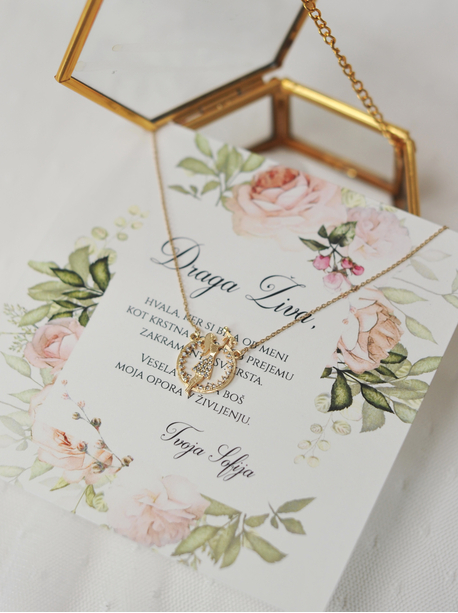 Podarite svoji ali otrokovi botri ali botru prekrasno zapestnico s posvetilom kot znak hvaležnosti, da bo vam ali vašemu otroku stal/-a ob strani. Vaše sporočilo lahko prilagodimo vašim željam.