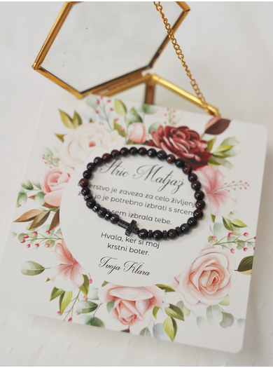 Podarite svojemu botru posebno energijsko zapestnico iz naravnih kamnov tigrovo oko, ki jo krasi motiv križa – simbol moči in duhovne povezanosti.